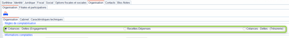 - Ouvrir Bureau Cegid → Organisation → Organisation → Règles de comptabilisation.