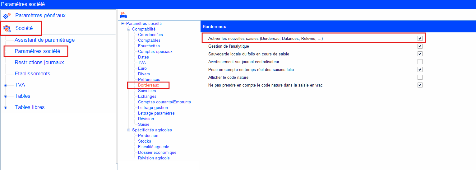 L’utilisateur souhaite activer la saisie sur bordereaux afin de saisir sa trésorerie par exemple.