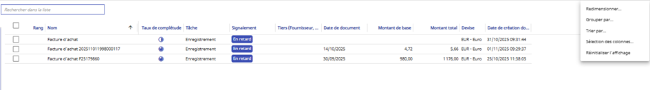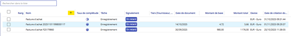 Pour trier les lignes par une colonne spécifique, cliquer sur l’intitulé de cette colonne.