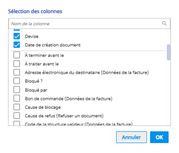 Les colonnes affichées ne sont pas correctement sélectionnées dans les paramètres d’affichage.