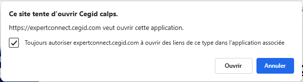 Le navigateur propose d’ouvrir le Calps : accepter pour poursuivre l’installation (cocher "Toujours autoriser..." pour ouvrir automatiquement le lien lors des prochaines connexions)