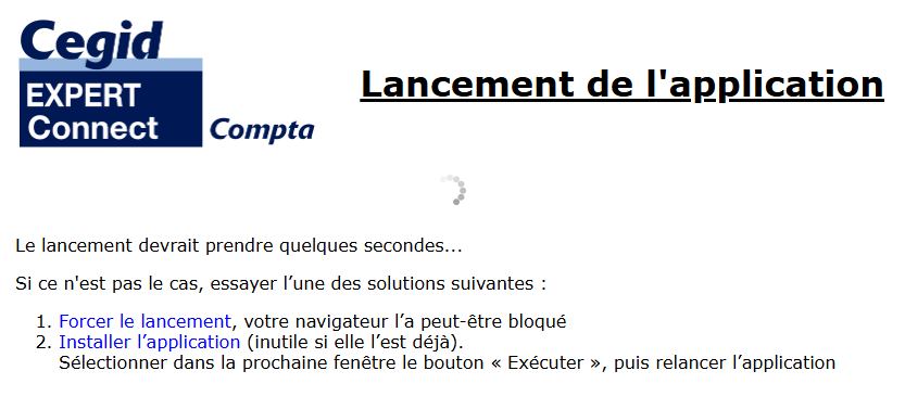 - Une fois le chargement terminé, le logiciel Cegid s’ouvre automatiquement.