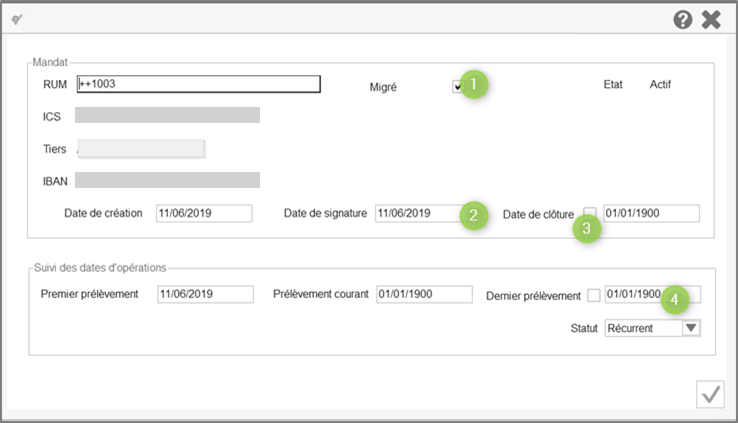 - Le mandat doit être migré (présence des « ++ » dans la souche RUM).