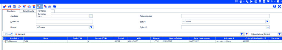 Un compte auxiliaire (fournisseur ou client) est fermé ou en sommeil et doit être réactivé pour permettre de nouvelles opérations.