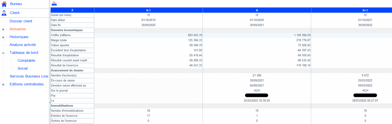 - Les données affichées dépendent des écritures comptables saisies et validées dans le dossier.