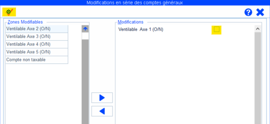 Dans la fenêtre qui apparaît, cliquer sur l’axe à désactiver puis sur la flèche orientée vers la droite.L’axe ventilable bascule à droite, dans la zone Modifications. Laisser la case non cochée.