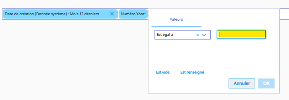 Dans la barre de recherche, sélectionner les critères appropriés, par exemple :