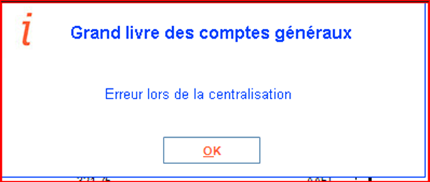 Lors de l’édition du Grand livre général (menu : Traitements courants / Éditions / Comptes et Grand-livre / Grand livre général), après sélection des comptes et validation, un message d’erreur apparaît.