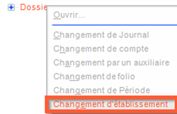 Un utilisateur souhaite changer l’établissement associé à des données comptables dans CEGID, soit pour tout le dossier, soit pour une période ou un journal spécifique.