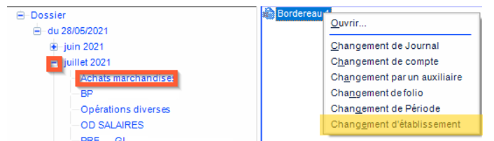Faire un clic droit sur les bordereaux concernés et cliquer sur 'Changement d'établissement'.