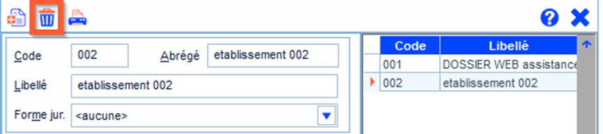 - La suppression d'un établissement est possible uniquement si aucune donnée comptable n’y est liée.