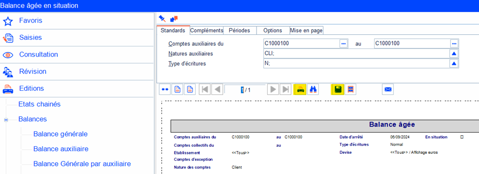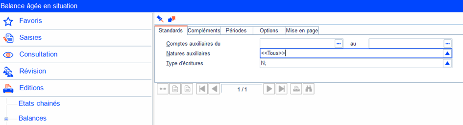 - Ouvrir : Traitements courants > Editions > Balances > Balance âgée.