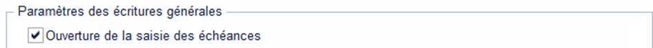 Dans Paramètres des écritures générales, cocher Ouverture de la saisie des échéances.