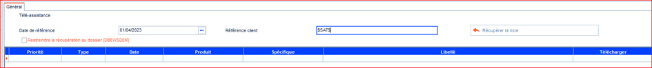 Dans Référence client, saisir $SAT$ et cliquer sur Récupérer la liste.