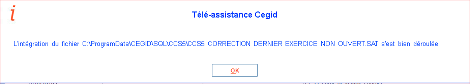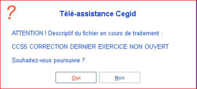 Cette correction rétablit la cohérence des exercices comptables. Si le problème persiste, contacter l'Assistance DILUZ.