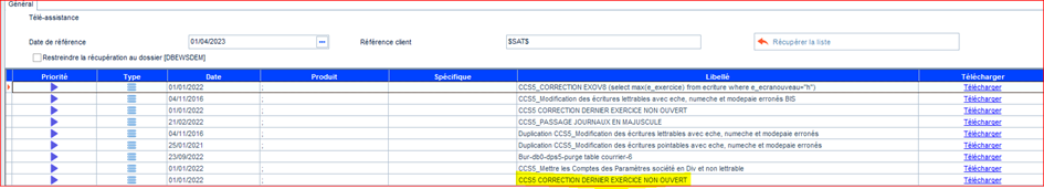 Sélectionner la ligne CCSS CORRECTION DERNIER EXERCICE NON OUVERT et cliquer sur Télécharger.