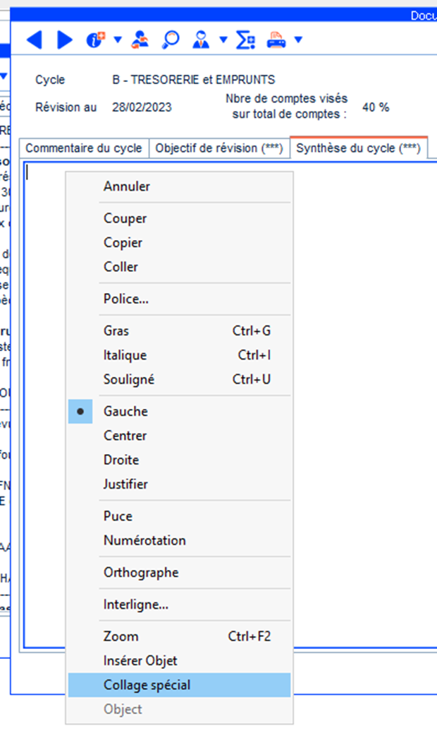 - Sélectionner tout le texte du cycle (Ctrl+A).
