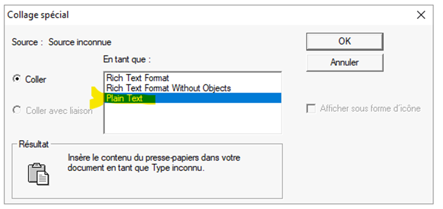 - La conversion en « plain text » supprime les mises en forme problématiques qui bloquent l’édition.