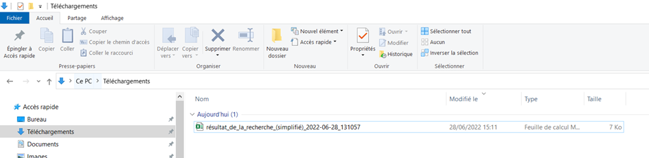 Vérifier que le fichier apparaît dans le dossier Mes téléchargements.