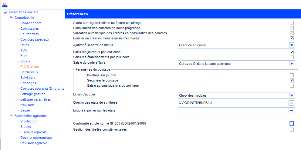 Faire un clic droit sur le fond d’écran et cliquer sur Société. Sélectionner Préférences puis décocher « conformité stricte norme NF 203 (BOI 24/01/2006) ».