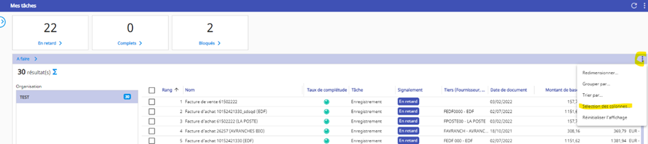 Par défaut, la colonne Numéro Yooz n’apparaît pas dans la liste des documents prêts à être enregistrés dans l’onglet Mes Tâches. Il est possible de l’afficher et de la positionner en tête de liste.