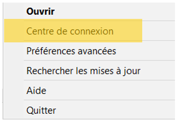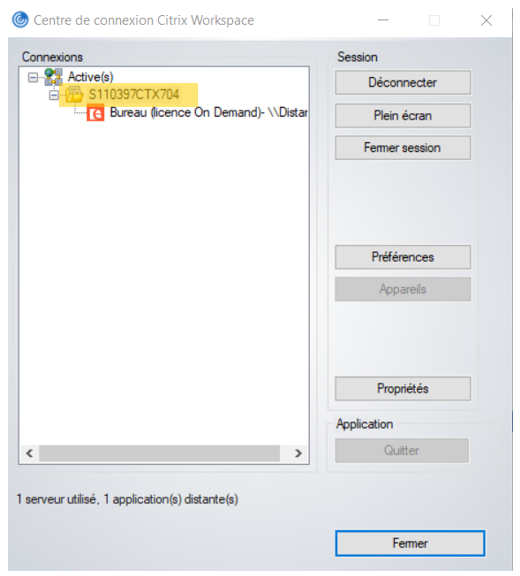 Afficher le nom du serveur Citrix via le Centre de connexion.