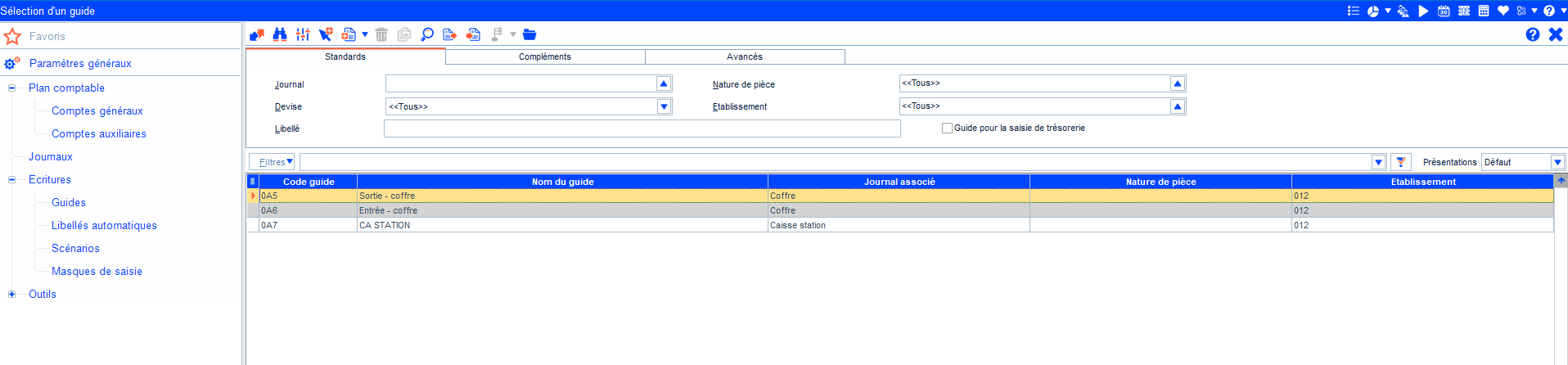 Accéder au menu Paramétrages / Écritures / Guides.