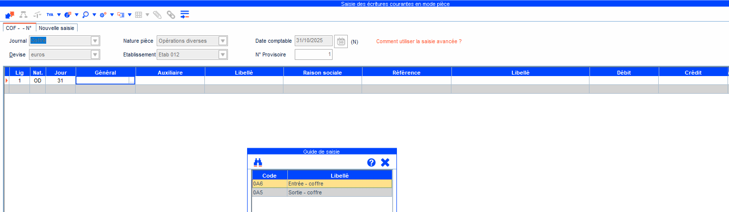 Lors de la saisie via un guide (menu : Traitements courants / Saisie / Choisir une période et le journal), après avoir utilisé le raccourci ALT + G et choisi le guide, l’ouverture et la saisie sont très lentes.