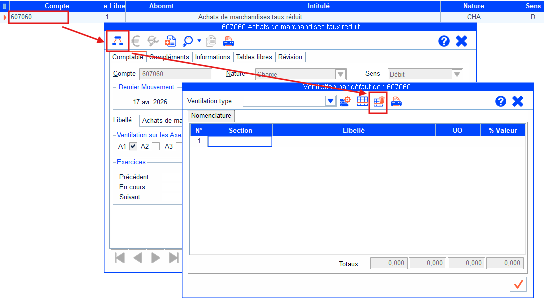 Solution 2 : Supprimer la ventilation paramétrée sur le comptable général