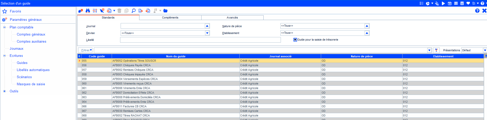 Accéder au menu : Paramétrages / Paramètres généraux / Écritures / Guides.