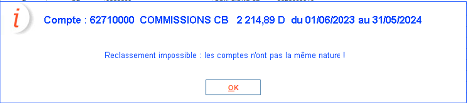 « Reclassement impossible : les comptes n’ont pas la même nature ! ».