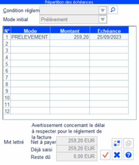 Compléter le plan d’échéances selon les modalités de l’échéancier saisi (dates, montants, nombre d’échéances, etc.).