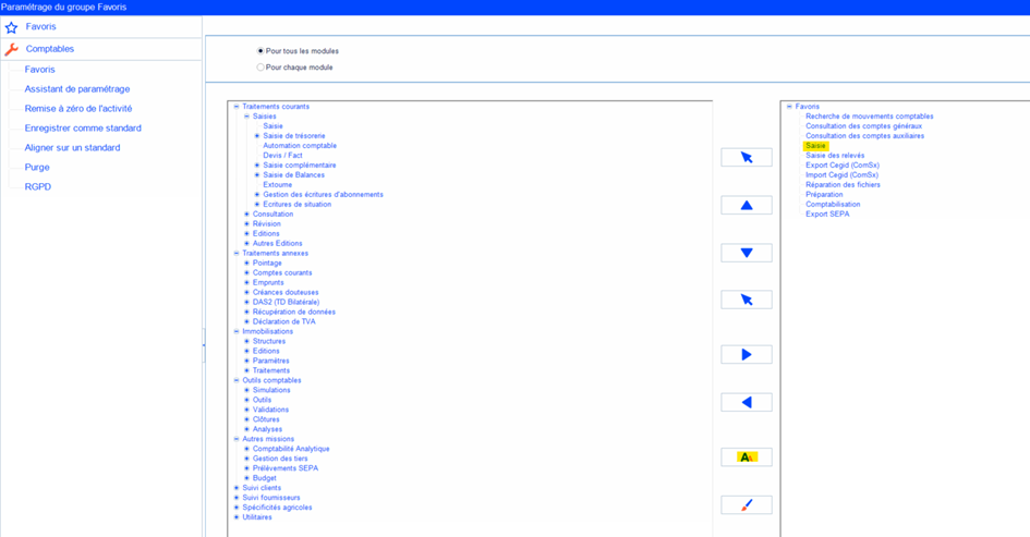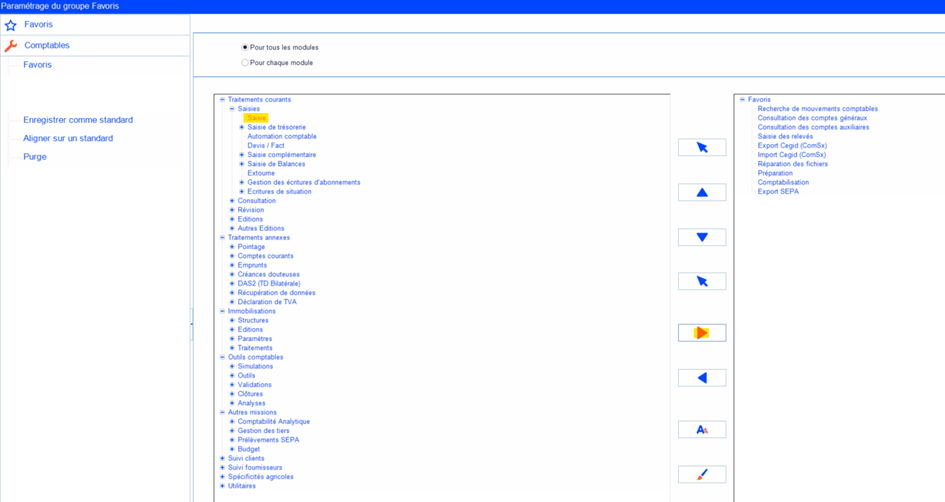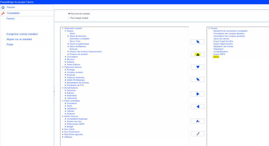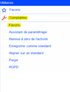 Accéder à Utilitaires > Comptables > Favoris.
